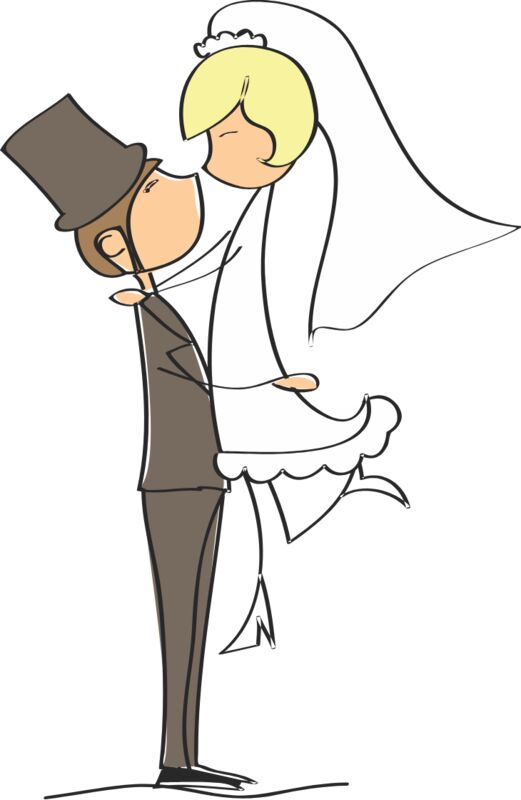 Cartoon Wedding Groom Bride Hug 1