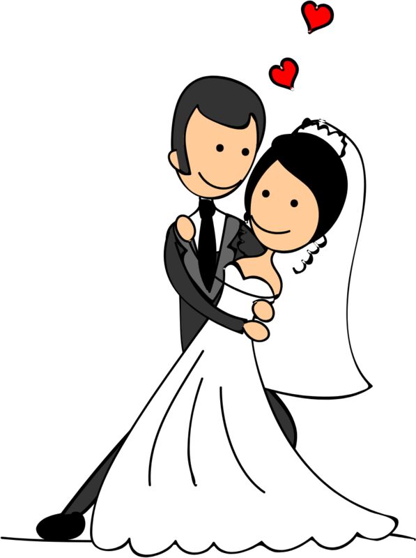 Cartoon Wedding Groom Bride Hug 3